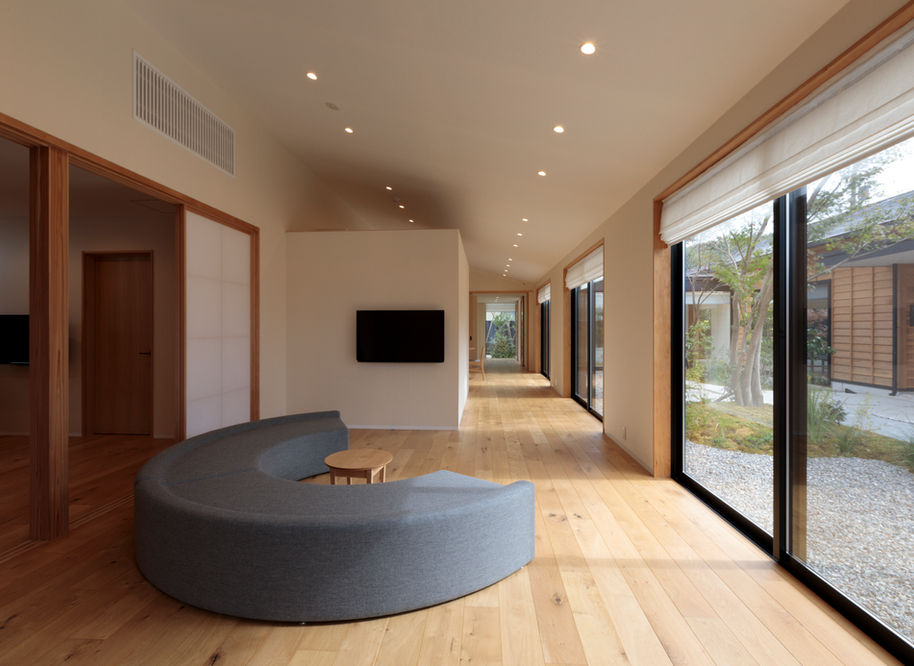 これからの葬儀における設えとしてはどのような家具が相応しいのかを考えながら、どのような宗教、どのような場面であっても、木の持つ温もりが優しくその時を包み込めるように願って形にしています。特に2メートルを超す長椅子についてはガラス越しに望む美しい「外」の世へ向かう場に寄り添えるよう願って設計を繰り返しました。